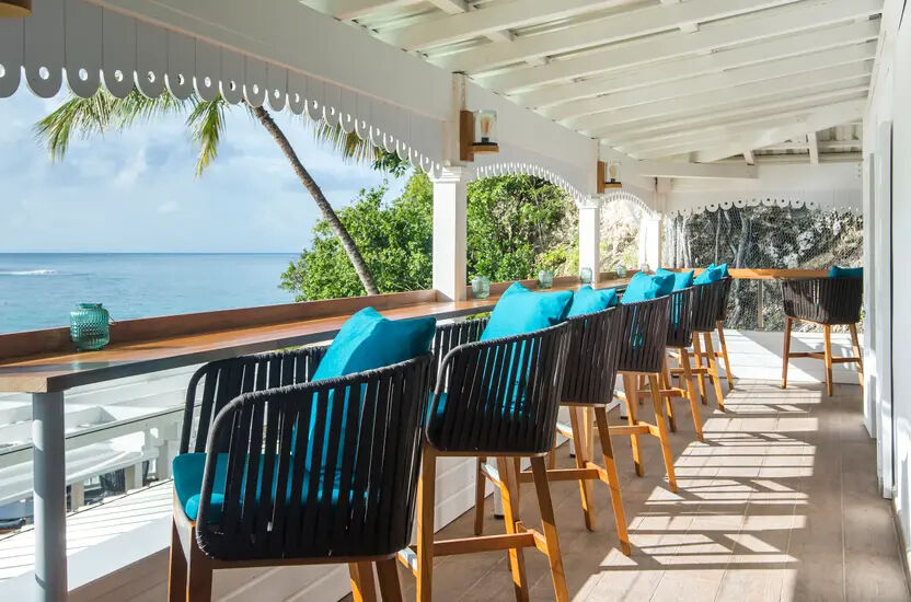 Allamanda Beach Club gemütliche Bar im ersten Stock bietet eine intime Terrasse