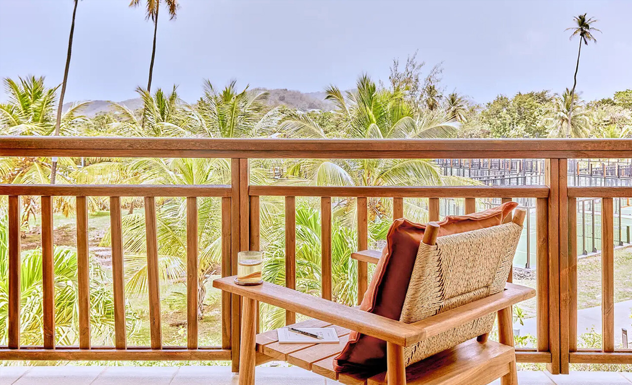 Die Einrichtung dieses Zimmers verbindet modernen Komfort mit einer tropischen